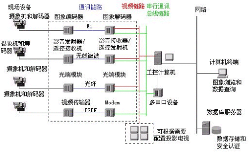 烟尘黑度监测系统方案设计 集中式解决方案 集中式方案是采用模拟链路进行视频信号的传输,在控制中心集中进行图象数字化的方案。 方案特点: