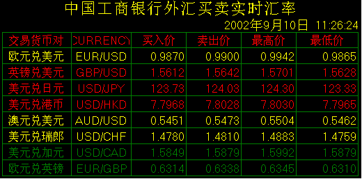 软件能够显示数据变化情况,用黄绿红三种颜色表示数据的平跌涨,这在外汇实时汇率中得到应用,如下图所示: